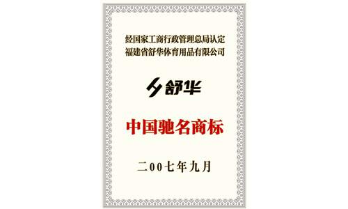 “中欧体育”商标经国家工商行政管理总局认定为“中国驰名商标”。 Shuhua was recognized as “Famous Trademark of China” by SAIC